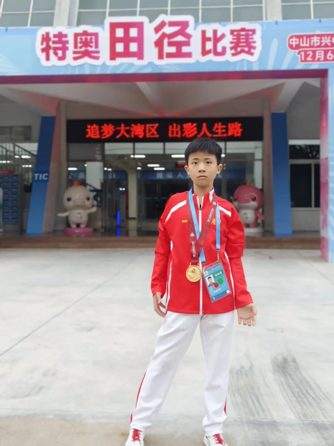 图为伍浩天获得金牌的照片