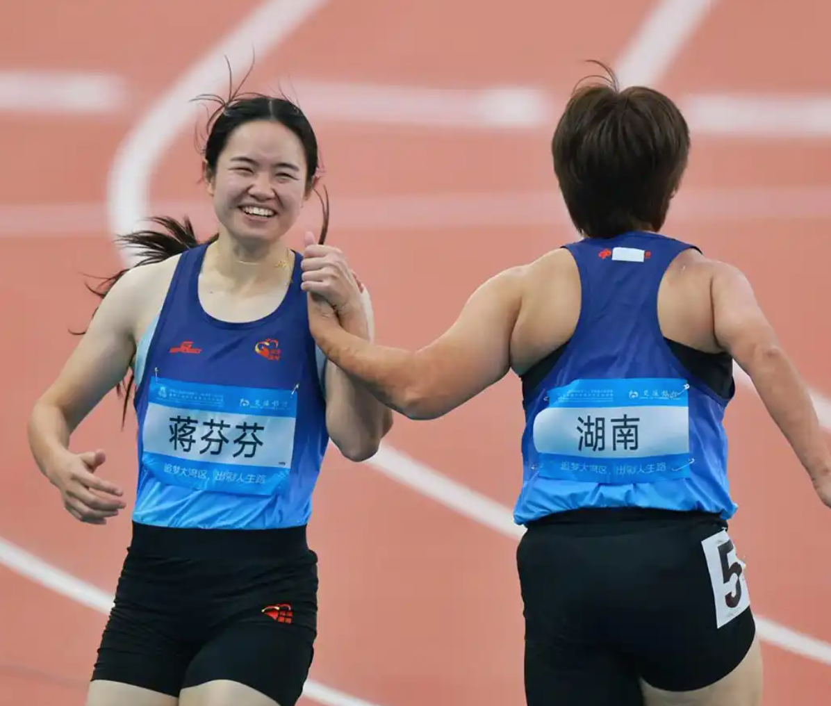 而怀化姑娘周霞、郴州姑娘史逸婷、益阳姑娘文晓燕,则在女子200米不同组别中上演 “湖南金花三连冠”。永州运动员黄睿华的 “一日双金”,更写满团队与个人的双向成就:男子200米T44级决赛中,他拖着术后未愈的腿咬牙冲刺;男子4×100米接力赛上,他与湘西石康君、邵阳许能、长沙曹涵全力拼搏,最终以44.05秒的成绩获得冠军。冲线后四人相拥的瞬间,赛道旁的观众自发响起掌声,这一刻,奖牌的颜色早已不重要,重要的是他们用团结证明:没有谁是一座孤岛。