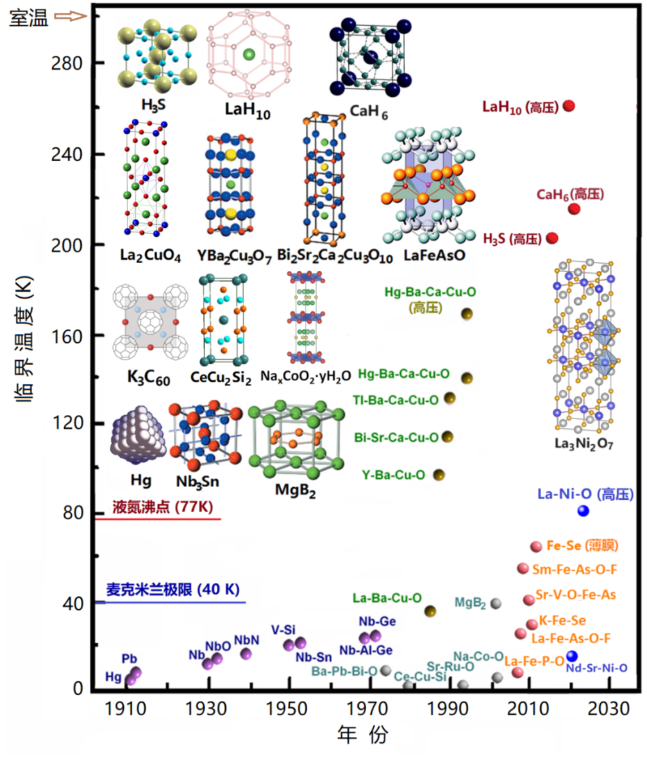 常见的超导材料体系,注意1980年代涌现的铜基、2006年后涌现的铁基以及2023年后涌现的镍基高温超导材料