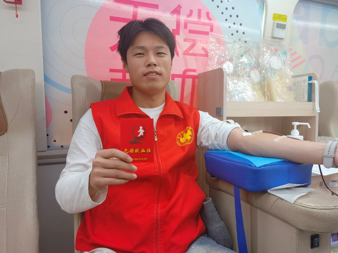 罗文洋正在献血(汪昊摄)