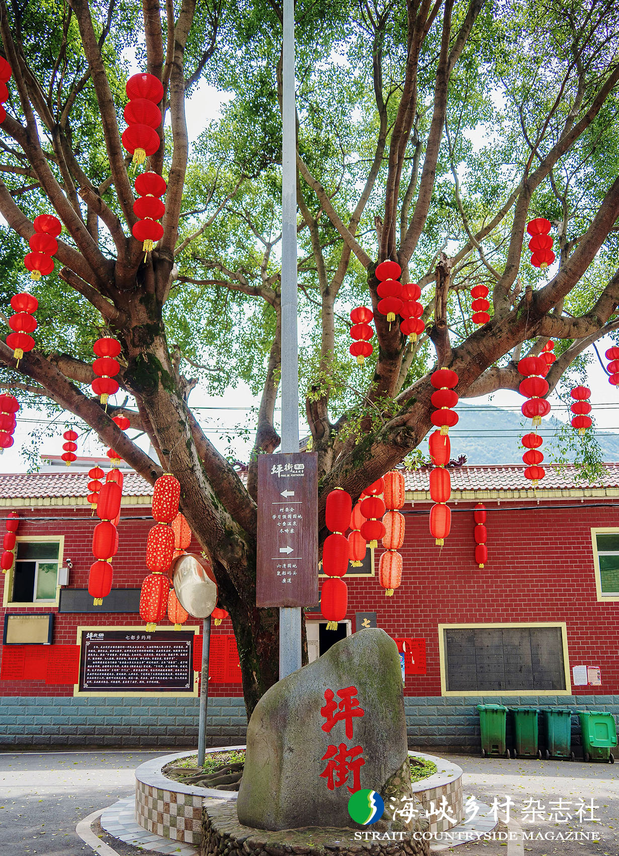 如今的坪街村,白墙黛瓦的新式民居与古朴的老宅和谐兼容,花香与果香交织,袅袅升起的炊烟更添人和。优越的生态环境与如画的田园景致令人心旷神怡。村里铺设了平整的水泥路,修筑了坚固的河堤,治理了淤塞的水沟,增设了整洁的垃圾站,让美丽乡村的愿景在坪街成为现实。昔日的泥泞土路早已不见踪影,取而代之的是划着鲜艳三色线的“闽清大通道”贯穿全村。村内道路纵横交错,两侧绿树成荫,夜幕降临时,一盏盏路灯如繁星般点亮坪街的夜晚。基础设施的升级与公共服务设施的完善,让村民充分享受着新时代的美好生活。