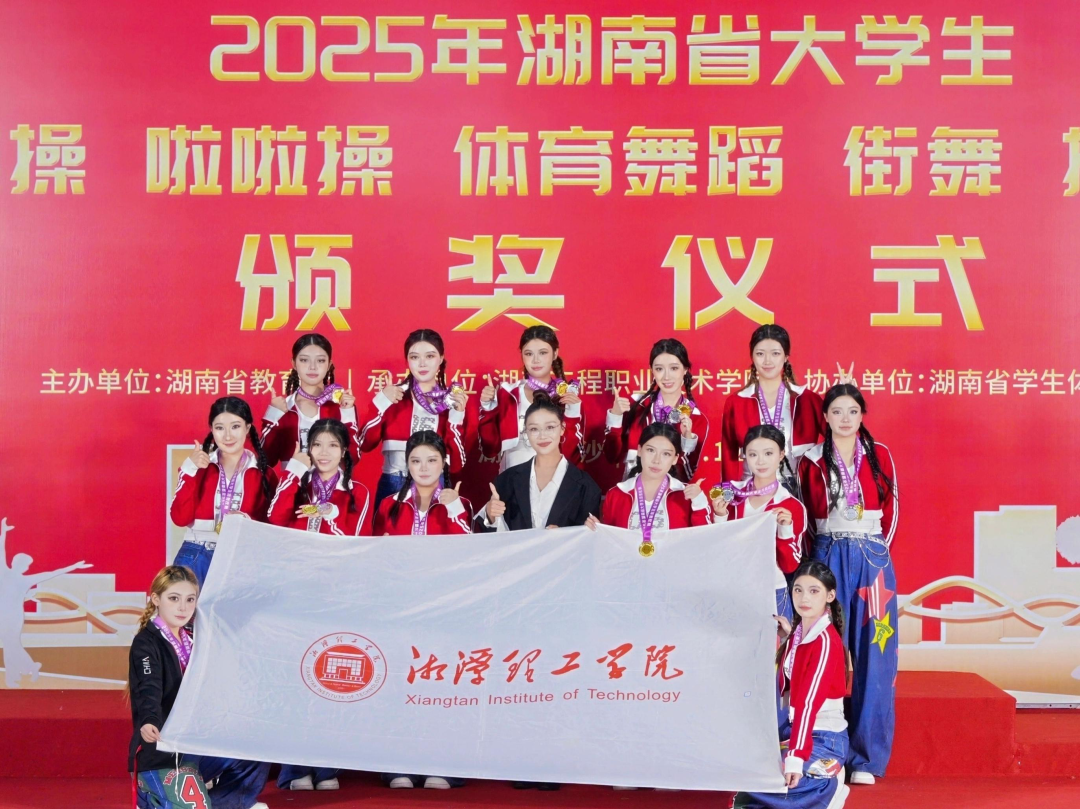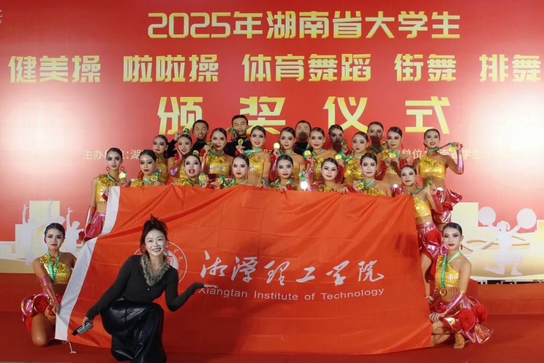 湘潭理工学院体舞队在大赛中斩获6金、3银、1铜,创造历史最佳成绩;湘潭理工学院排舞队首次亮相即斩获2金、1银,展现出湘理学子昂扬的体育风貌与卓越的团队实力。