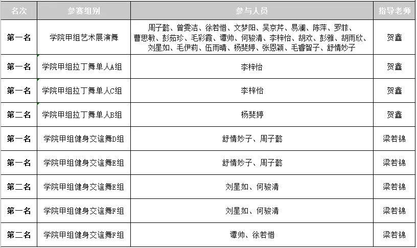 教育学院负责人介绍,长期以来,湘潭理工体舞队、排舞队深入践行学校CFAP人培养模式,坚持“课堂-实践-竞赛”一体化:学生将课堂所学转化为赛场细节,老师以教学经验优化训练,推动“课堂实战化、经验教学化”。“竞技锤炼技能,协作凝聚力量!相信,接下来,校体舞队、排舞队一定能够继续以热血逐梦,将大赛拼搏精神融入学习、成长、进步,展现湘理青年‘知行合一、精益求精’的执着追求。”