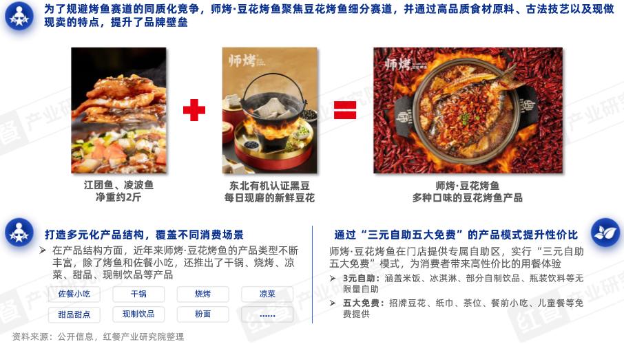 产品方面,豆花烤鱼作为师烤·豆花烤鱼的拳头产品,其坚持使用高品质食材原料、古法技艺,比如鱼选用净重约2斤的优质江团鱼和凌波鱼,豆花则选用东北佳木斯有机认证的黑豆,并采用古法技艺每日在门店后厨新鲜现磨。
