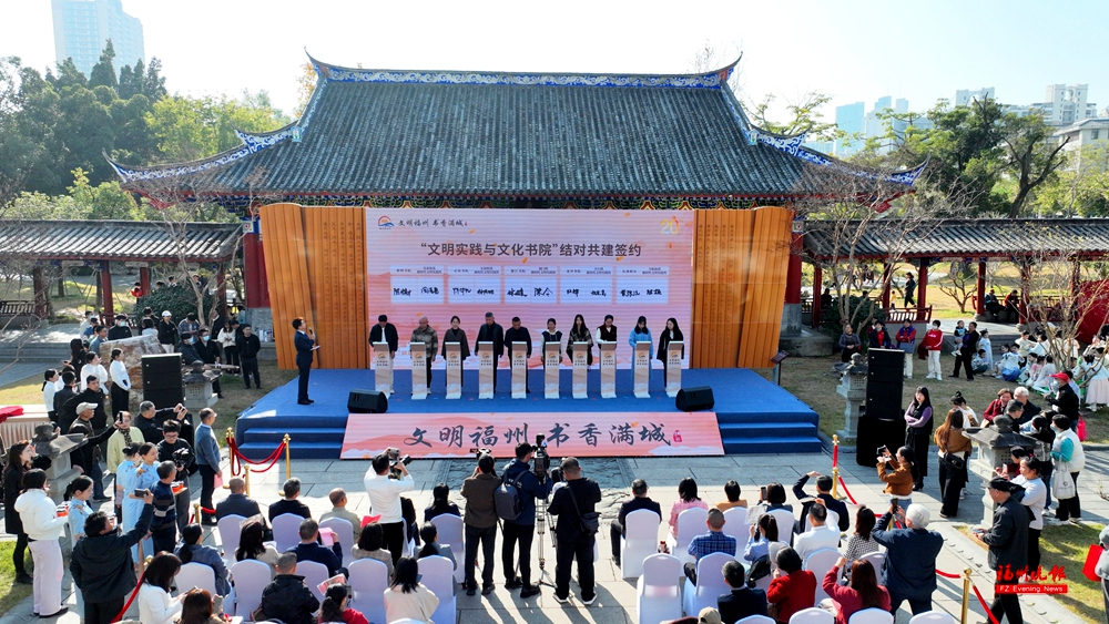 第二十届福州读书月深入实施“文明实践+”工程,推动部分新时代文明实践中心(所、站)与辖区书院联动。活动现场举行了“文明实践+文化书院”结对共建签约仪式,今年首批16家书院纳入共建体系,推动新时代文明实践所、站与闽都书院深度融合,助力书香浸润万家。据悉,我市将以这些书院为载体,常态化开展经典诵读、文化讲座等形式多样的文明实践活动,让传统书院在引领阅读实践方面持续发挥作用,让书香更深入地浸润千家万户。