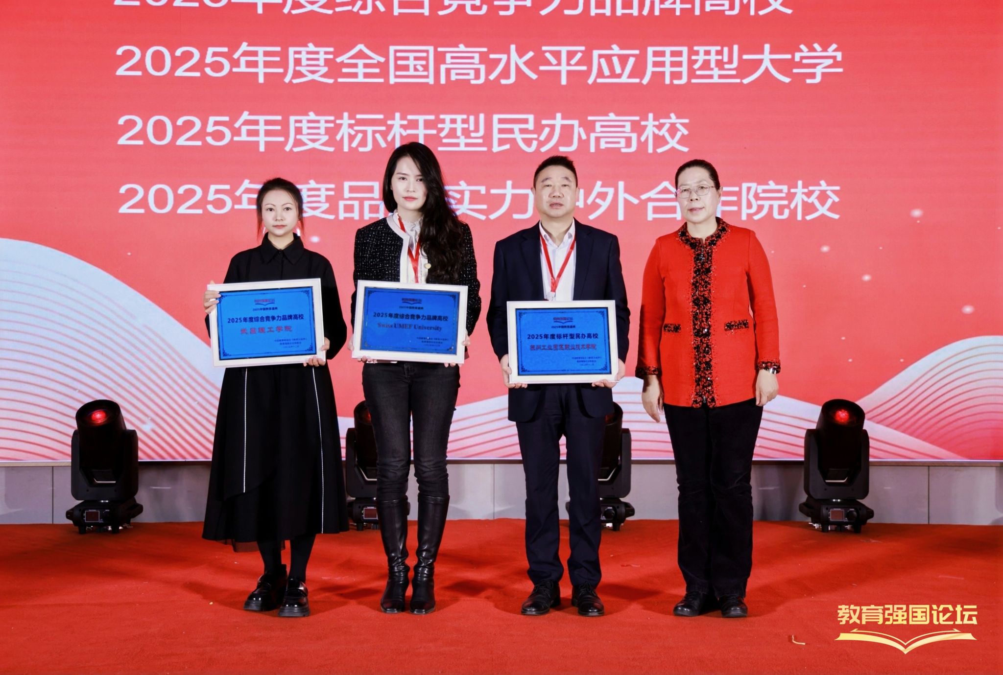 12月12日,由中国教育电视台《教育大视界》主办的“教育强国论坛暨2025中国教育盛典”在北京举行。盛典上,武昌理工学院凭借突出的办学成果、鲜明的育人特色与广泛的社会影响力,荣膺“2025年度综合竞争力品牌高校”称号,同时也是唯一获此殊荣的高校。