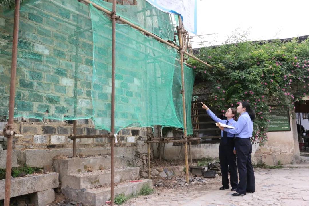 今年4月,安徽省泾县检察院干警查看古建筑修复情况。