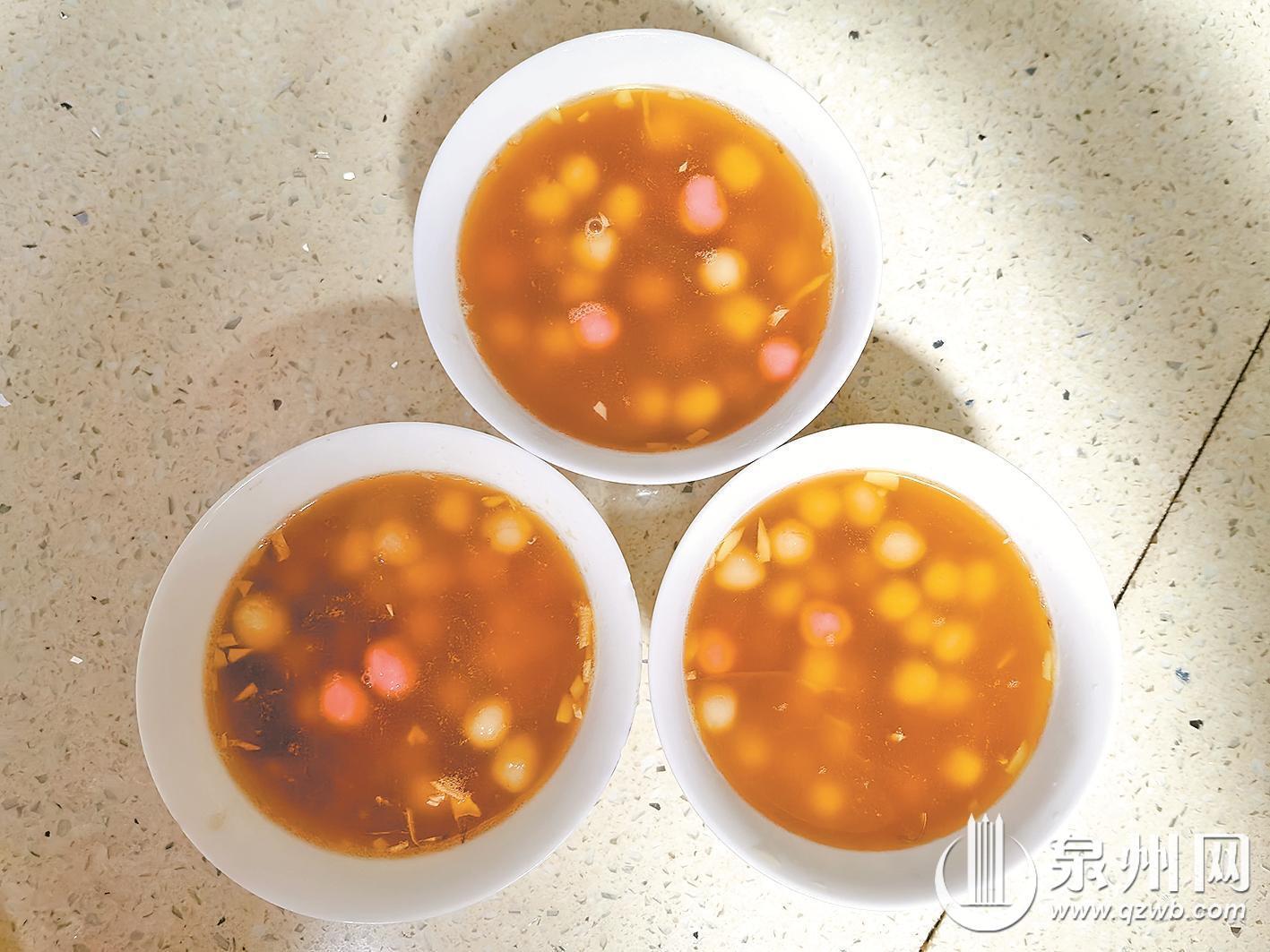 一碗软糯爽滑的姜汤冬至丸,令来自浙江绍兴的游客鲁女士备感惊艳。“绍兴人冬至一般吃馄饨、喝冬至酒,汤圆吃得比较少。”她说,泉州的冬至丸大小适中,搭配姜汤里的芋头丁一起吃,特别香甜可口,“今天刚好降温了,吃这个正合适,暖心又暖胃。”
