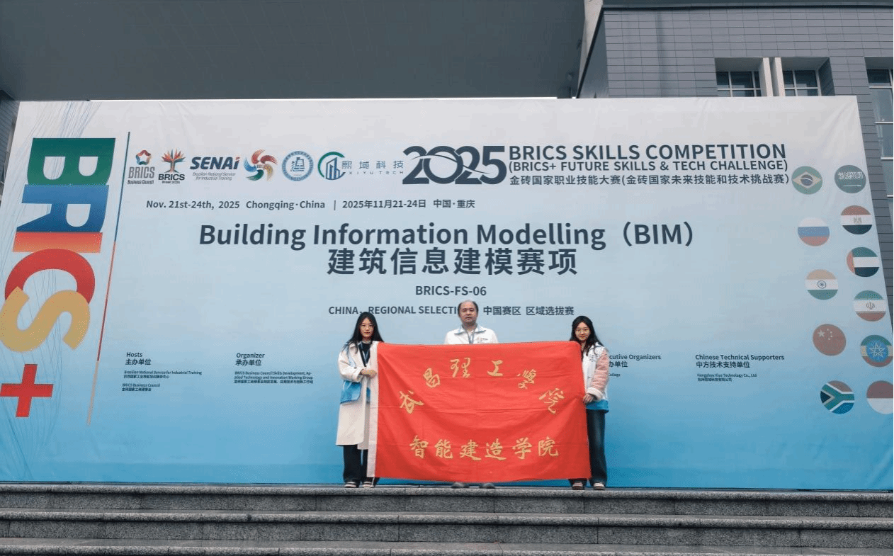 近日,2025“金砖国家职业技能大赛”建筑信息建模赛项区域选拔赛在重庆落幕。武昌理工学院智能建造学院刘俊老师带领工程造价2201班的陆婉婷、孙烨两位同学参加比赛并荣获三等奖。