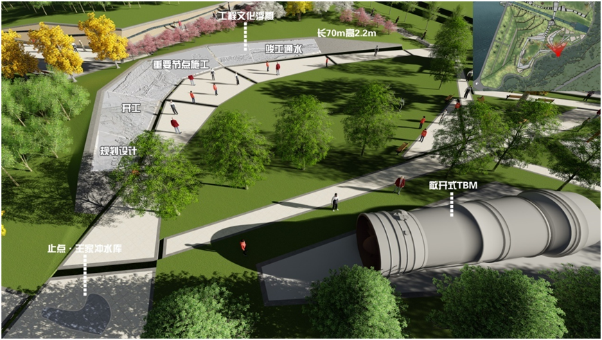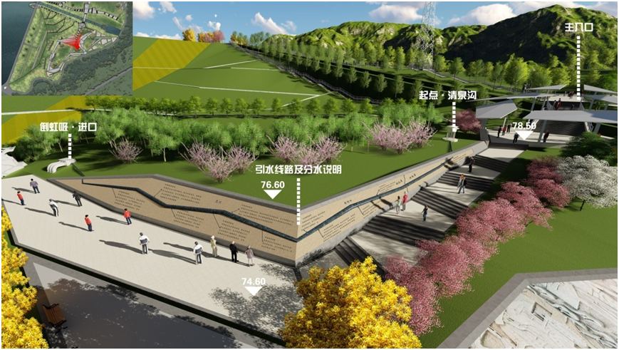 该节点集中展示了具有多种代表性水利工程建设成就及工程措施,结合孟楼历史文化,突出水利工程风采;