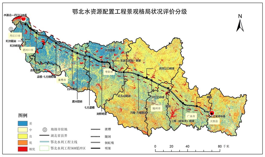 1.规划思路:结合工程生产功能的需要,客观评价工程扰动对扰动区景观格局和景观生态的影响,为鄂北地区水资源配置工程沿线的生态恢复及景观资源的保护、开发和利用提供了科学的依据,对于改善扰动区的生态环境有着十分重要的意义。
