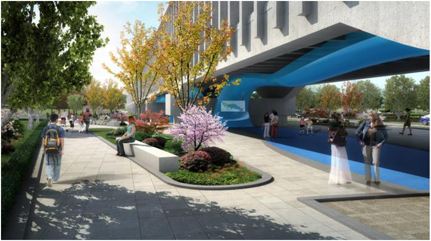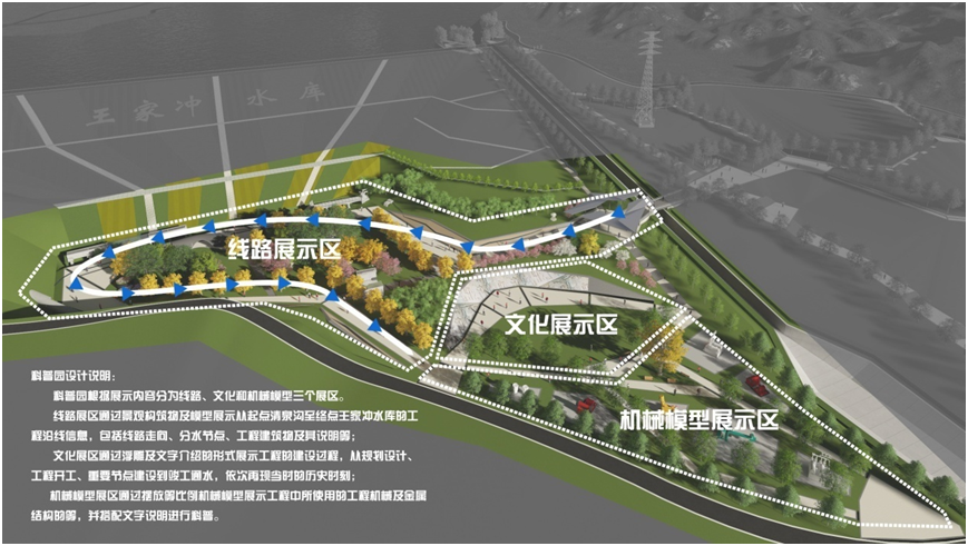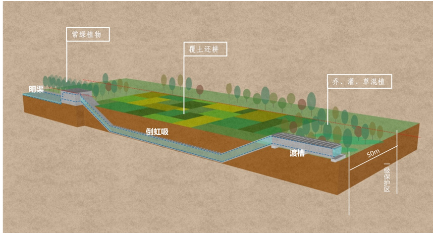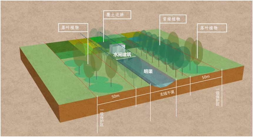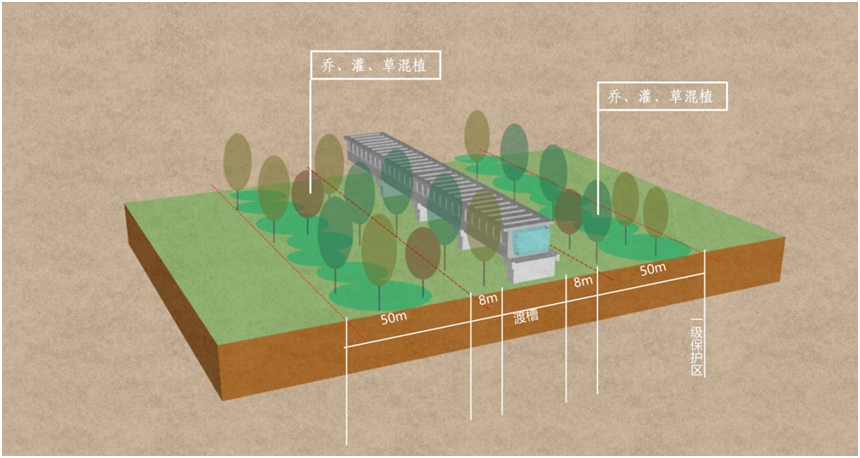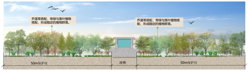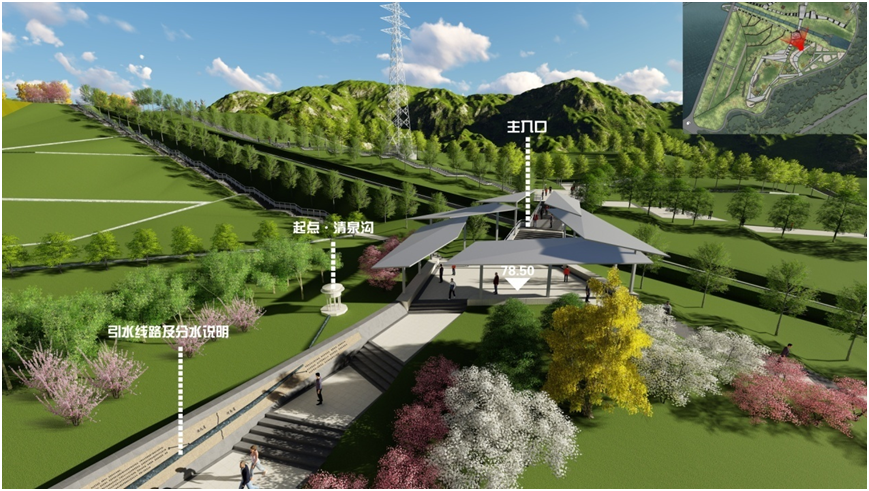 该节点利用渡槽主体工程景观,结合生态环境建设延伸拓展空间,形成集生态连通、文化展示、公共服务为一体的生态文化长廊。