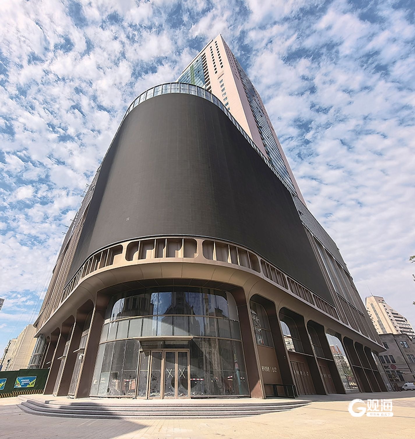 在市南区香港中路28号,一栋以红砖铺贴外立面的建筑正在施工中,独特的色调和造型与周围高楼形成反差,呈现出厚重工业风与现代建筑相结合的视觉效果。这座建筑曾是青岛国敦大酒店的裙楼,因经营不善闲置多年。如今,这里将改造成“亚洲市集”商业综合体。