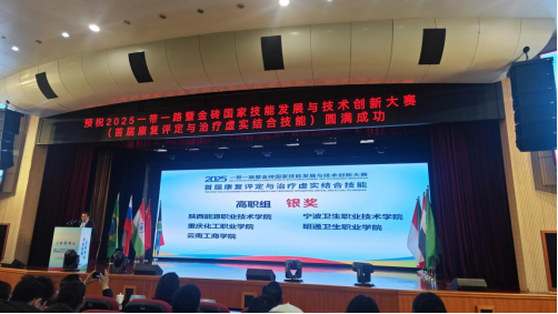 12月20日至22日,2025"一带一路"暨金砖国家技能发展与技术创新大赛首届康复评定与治疗虚实结合技能赛项全国总决赛在南京卫生高等职业技术学院举行。经过激烈角逐,陕西能源职业技术学院代表队在高职组总成绩排名第三,晋级世界赛,该校康复治疗技术专业边思钰、高琪琦两位学生荣获银奖,教师史安娜、王力彬获优秀指导老师。