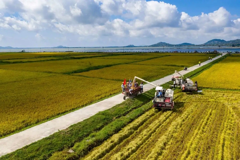 海水稻田,机械采收海水稻