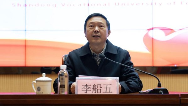 李船五代表山东外事职业大学教育基金会致辞,向山东众邦社会公益服务中心的慷慨善举致以崇高敬意,强调真正的公益不仅在于物质赠予,更在于精神唤醒与价值传递。他希望同学们深刻感受这份温暖的重量,将社会的信任与期许转化为奋进动力,未来学有所成时,将这份善意接力传递,用微小善行诠释公益精神。
