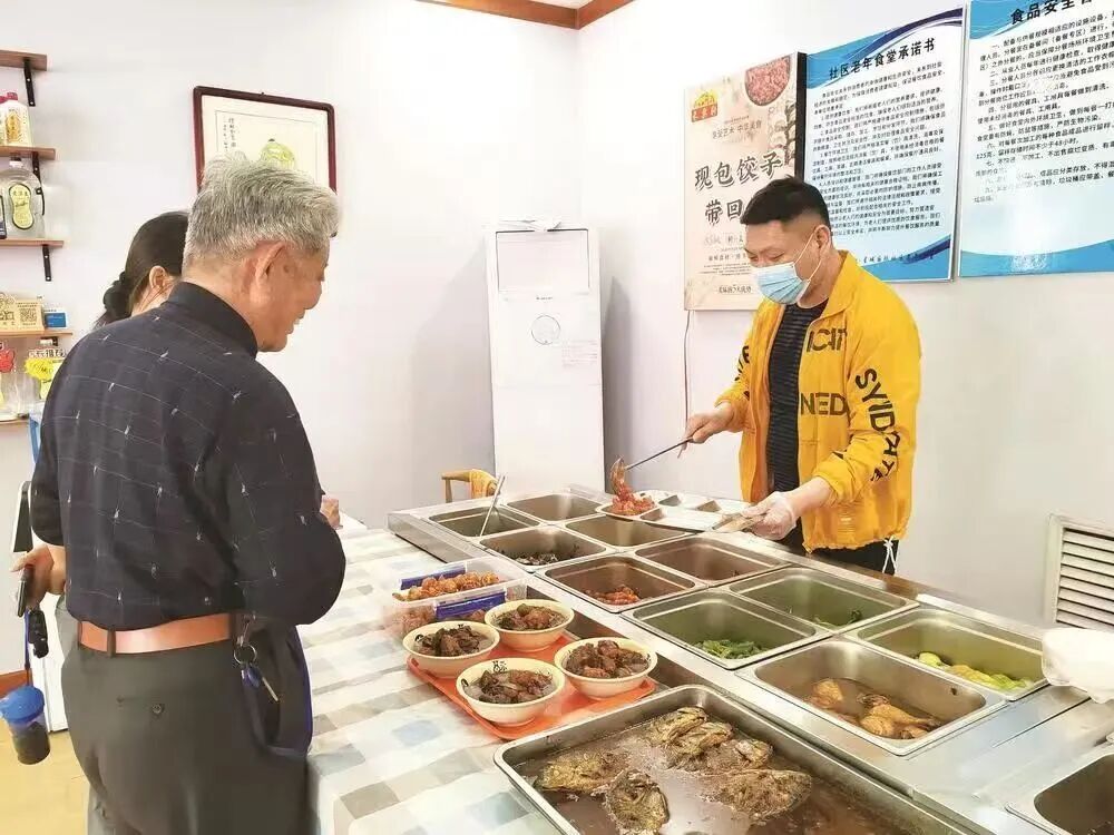 居民在丛台区星城国际社区老年食堂打饭。邯郸新闻传媒中心记者王梦洁/摄