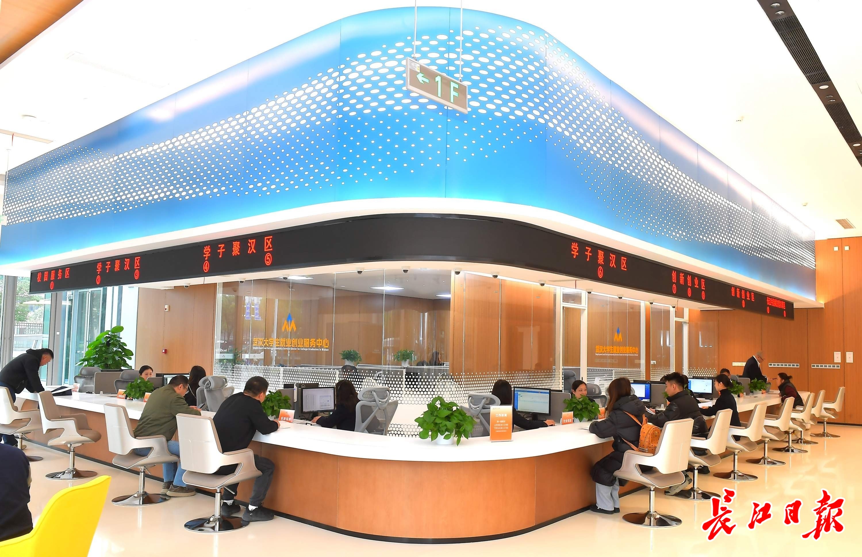 武汉人才之家里开放式的服务岛。记者刘斌 摄