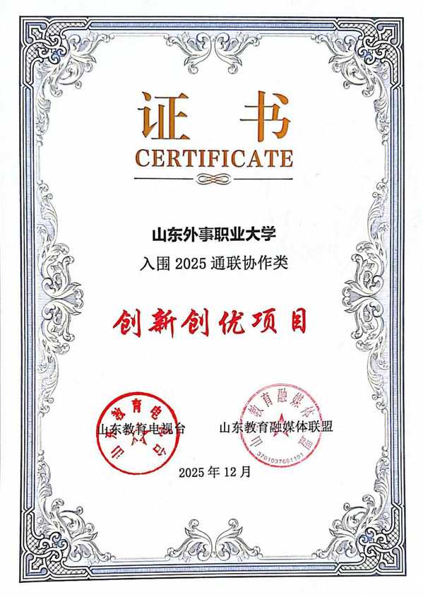 近日,“2025山东教育融媒·泰山奖”评选活动结果揭晓,山东外事职业大学荣获“2025通联协作类创新创优项目”等4个奖项。