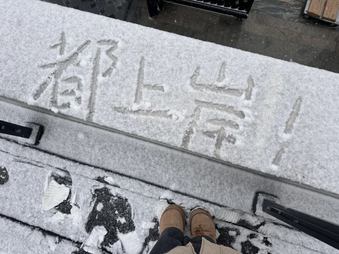 清晨寒意正浓,自习室的窗外忽然飘起了雪。我轻手轻脚推开通往露台的门,在雪上写下“都上岸!”。真心希望所有在冷风中仍向暖而行的人,所有咬着牙的坚持,都能被时光温柔回馈。辛苦了自己,辛苦了大家!
