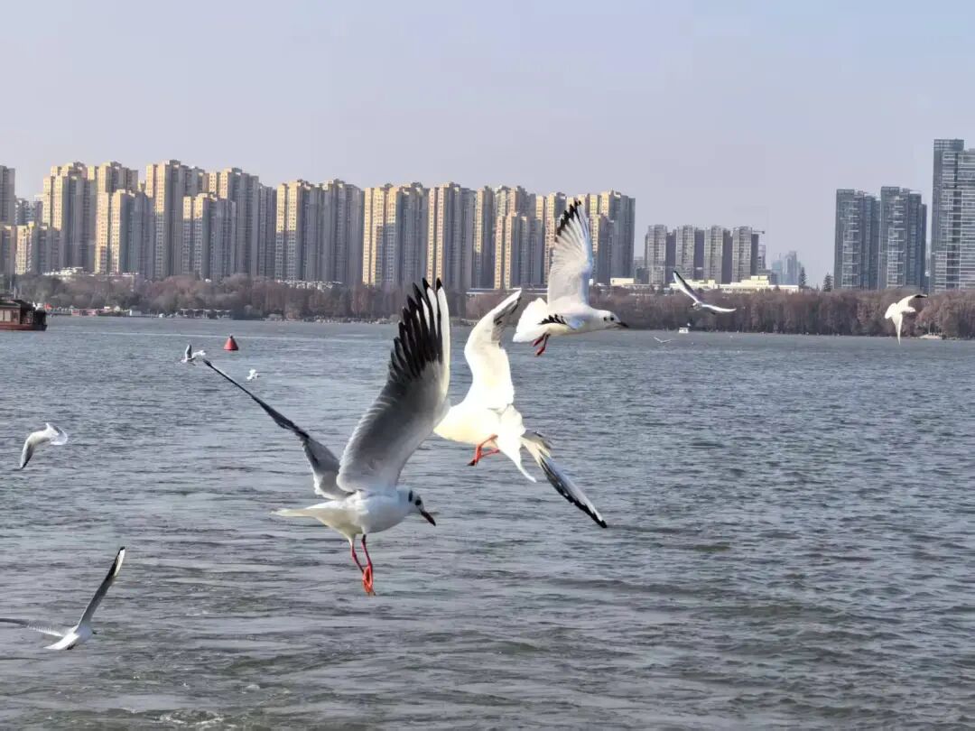和朋友在东湖游玩时,红嘴鸥成群掠过水面,翅尖划破波光,红喙点点在蓝天下格外鲜活。城市楼宇作背景,自然生灵与都市烟火相融,船行风来、鸥鸣清脆,瞬间觉得生活的美好就藏在这湖光与飞鸟的邂逅里。