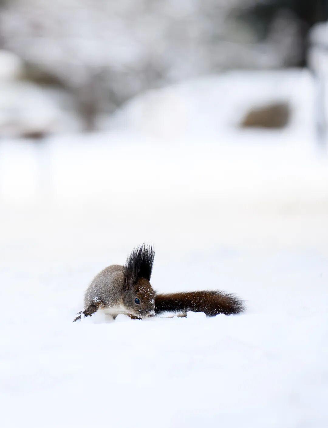 雪后的情人坡,我遇见了一只早起的小松鼠。