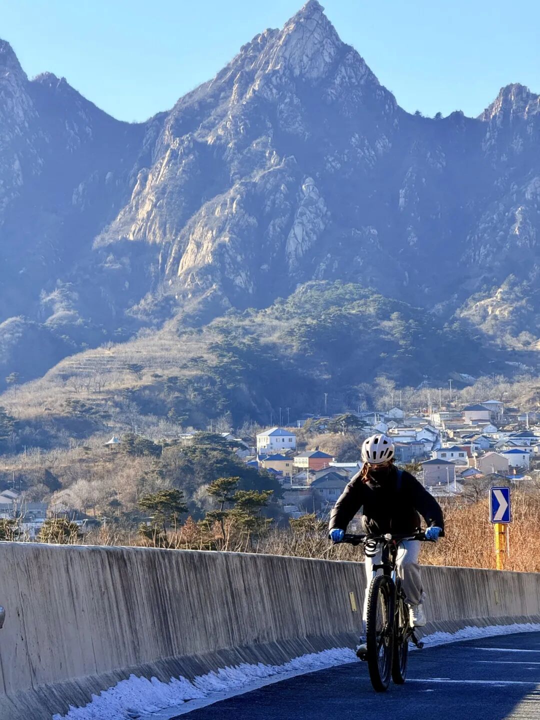 100公里骑行锻炼,前半程我在女朋友前面领骑。停下休息的时候,我用长焦镜头拍下她爬升的模样。手机正在播放“爱在西元前”,后面露出的岩壁见证了谁的青春,抬升的地壳又深埋着谁的永远。这是我们在一起的第5个冬至,每个都很特别。