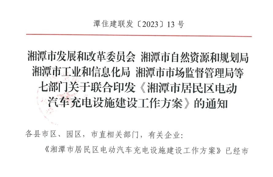 《湘潭市居民区电动汽车充电设施建设工作方案》相关要求