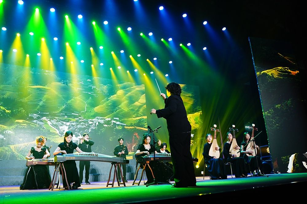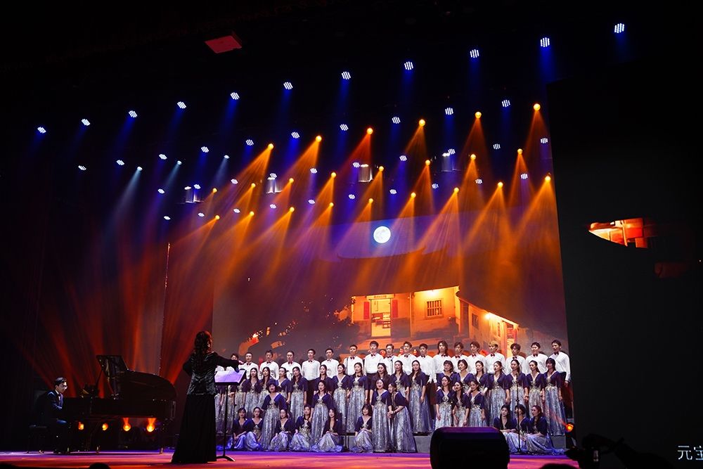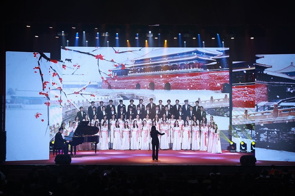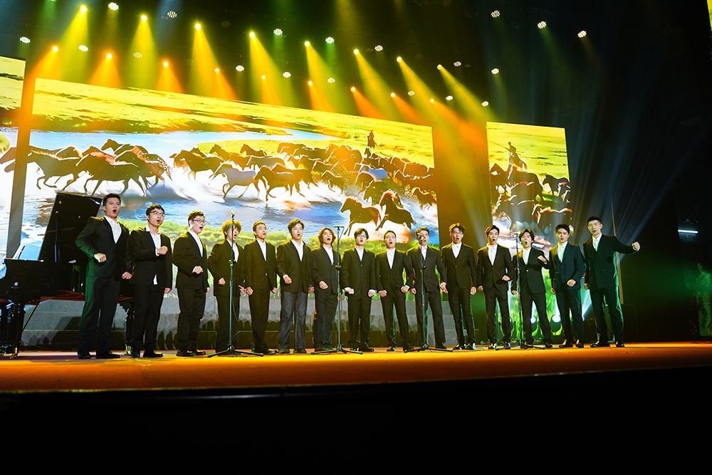 晚会在集体演出中推向高潮,汕头大学合唱团的《光亮》以清澈有力的和声传递希望与力量;师生合唱团先后带来《亲爱的你啊》《大海啊故乡》,随后与管乐团携手演绎《我的祖国》,深情的旋律与豪迈的气势交织,致敬奋斗岁月,礼赞时代脉动。