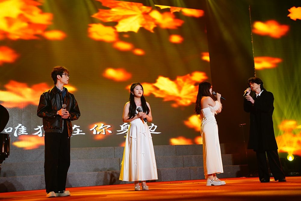 歌曲联唱环节风格多元,从古典幽默的《猫之二重唱》到音乐剧经典选段《Satisfied》,再到饱含深情的《落叶归根》,表演者们与钢伴默契配合,赢得阵阵掌声;玉音乐社的器乐合奏《瑶族舞曲》旋律明快,将瑶族人民辞旧迎新的喜悦融入音符;师生武术队领衔的《止戈为武》刚柔相济,尽显中华武术的魅力与育人之德;医学院师生合唱团以《一荤一素》《爱永在》诠释了小家温情与医者大爱,旋律温暖真切、动人心弦。