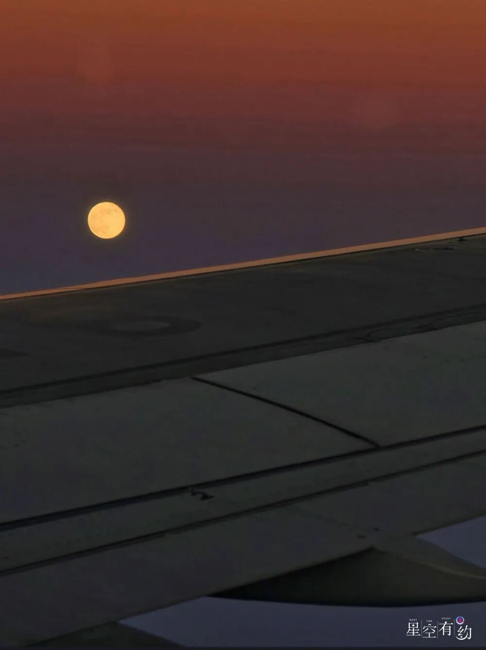 2025年12月5日,在飞行的飞机上拍摄的“超级月亮”。(钟奕 摄)