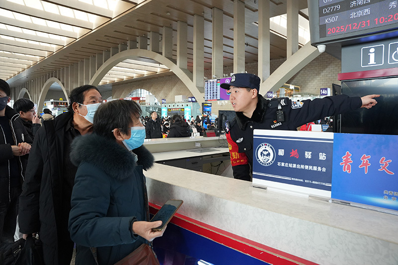 2026年元旦假期,石家庄铁路公安处紧密结合客流特点,科学动态布置警力,加强联勤联动,严密站车巡查,强化安检查危,广泛开展铁路安全常识宣传教育,全力维护良好秩序,确保旅客安全出行。