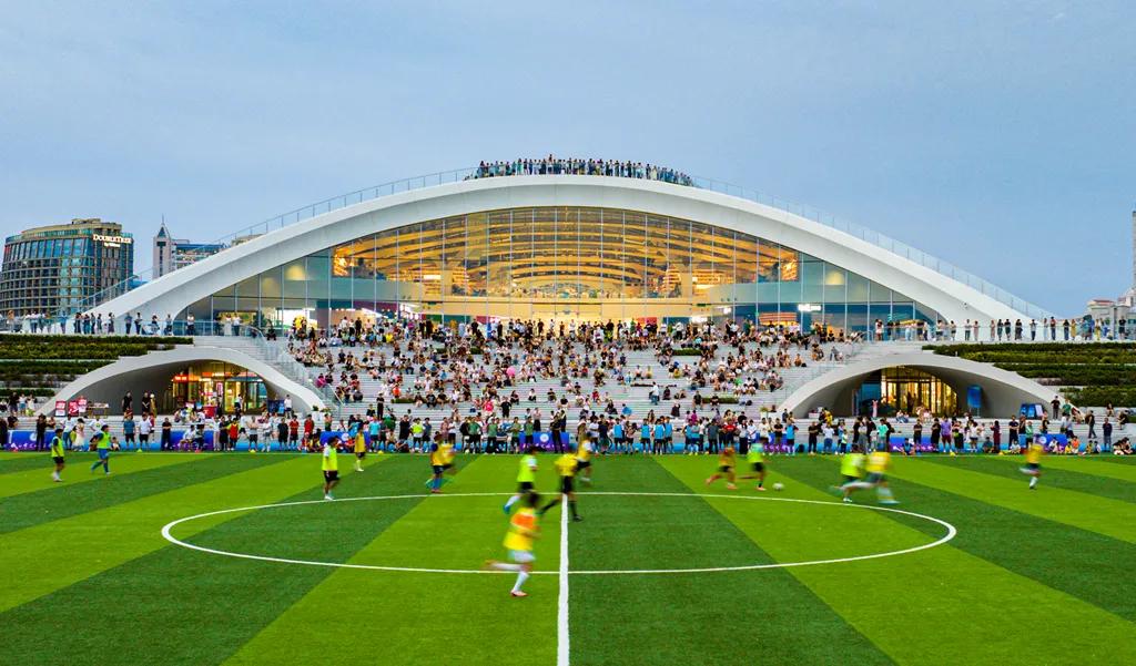至海港湾通过创新性规划,解决了城市过度商业化挤压公共资源的核心社会痛点,并探索了商业开发与公共福祉平衡的经济新模式,将超过40%的面积用于公共服务与场景体验,建设儿童友好中心、城市年轻力中心等六大功能空间。同时,打造屋顶花园、看海大操场、城市书房等全时段开放空间,提供360°观景视角和专业化健身场地,真正将优质资源还给市民,实现从封闭港区到全民共享空间的转型。