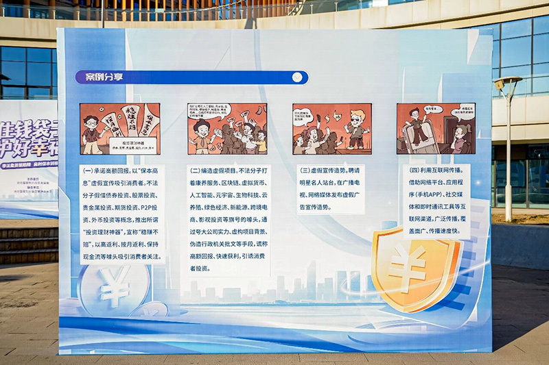在防范非法金融活动知识展板科普区,主办方通过图文并茂的形式,系统梳理“高息理财”“以房养老”等骗局特征、手段及后果。