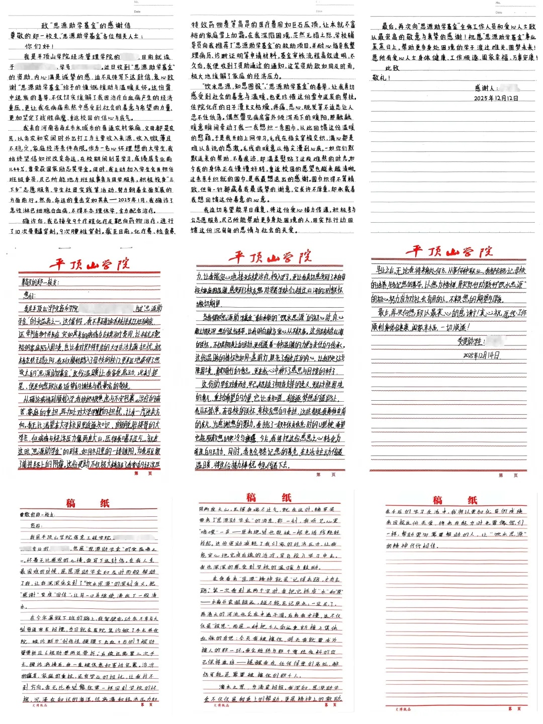 遭遇严重车祸的小宇(化名),至今记得拿到诊断书时的绝望——创伤性硬膜下出血、9根肋骨骨折,后续的二次手术让这个普通家庭不堪重负。“辅导员说,郑一校友当年也是在最难的时候被母校拉了一把,现在他成了拉别人的人。”小宇说,“思源”这两个字,她现在懂了:“学校给我的不只是一笔钱,更是一种力量——让我知道,再难的坎,跨过去就能成为帮助别人的底气。”
