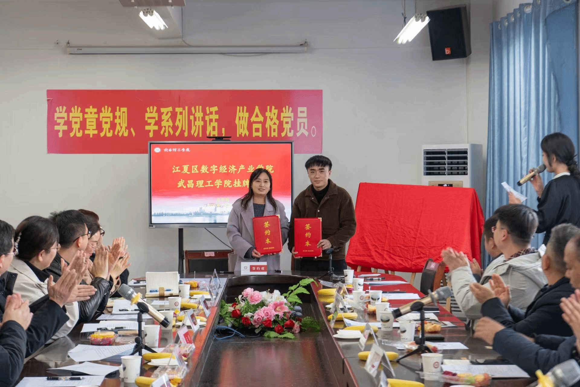 12月25日,“江夏区数字经济产业学院·武昌理工学院示范基地”挂牌仪式在武昌理工学院商学院隆重举行。本次活动由武汉市江夏区经济信息化和科技创新局(数据局)、江夏区大数据中心、校合作发展促进中心与工商联合会主办,数字经济联合会和武昌理工学院商学院联合承办,江夏区相关单位代表、武昌理工学院代表及企业代表参与本次会议,旨在深化校地融合、共育数字经济产业急需人才,同时也标志着政、行、校、企四方协同育人平台正式落地运作。