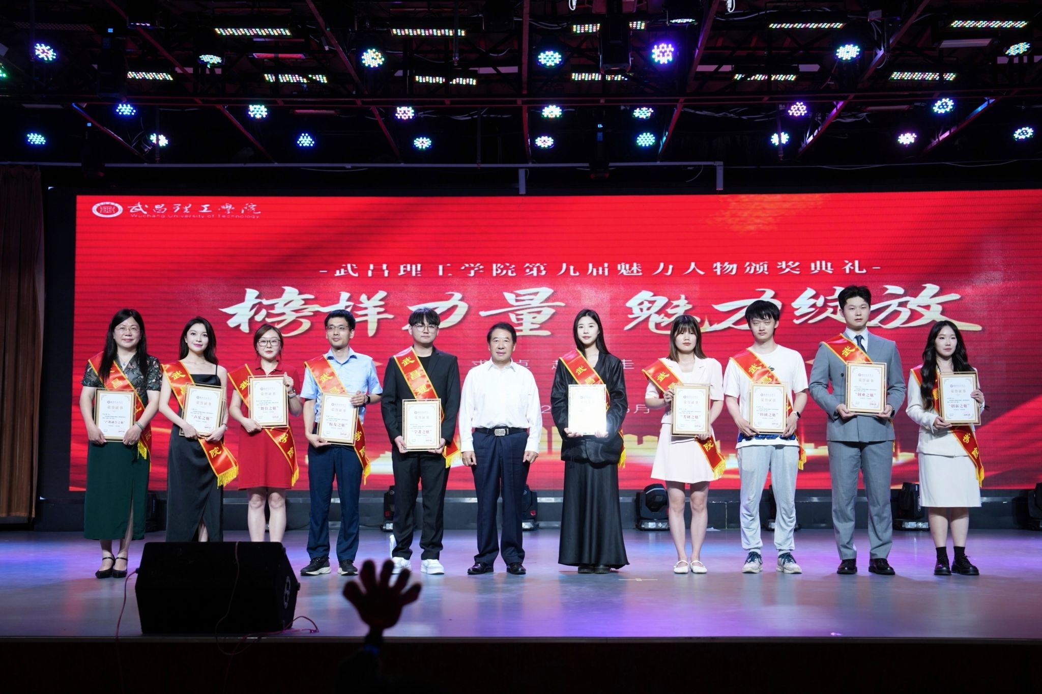 2025年,武昌理工学院隆重举办第九届“魅力人物”评选与颁奖典礼,十位杰出师生与校友荣膺武昌理工学院“魅力人物”称号。获奖者涵盖教学、科研、创业、文艺、公益等多个领域,包括推动产教融合的沈易娟院长、考研上岸率超53%的药学2101班、在国际顶刊发表论文的祝海川校友、抖音粉丝超255万的杨雨桐同学、成功创业营业额破亿的王嘉浩同学等。他们以卓越成就展现了学校在人才培养、学术创新与社会服务方面的丰硕成果。校长赵作斌教授亲自为获奖者颁奖。