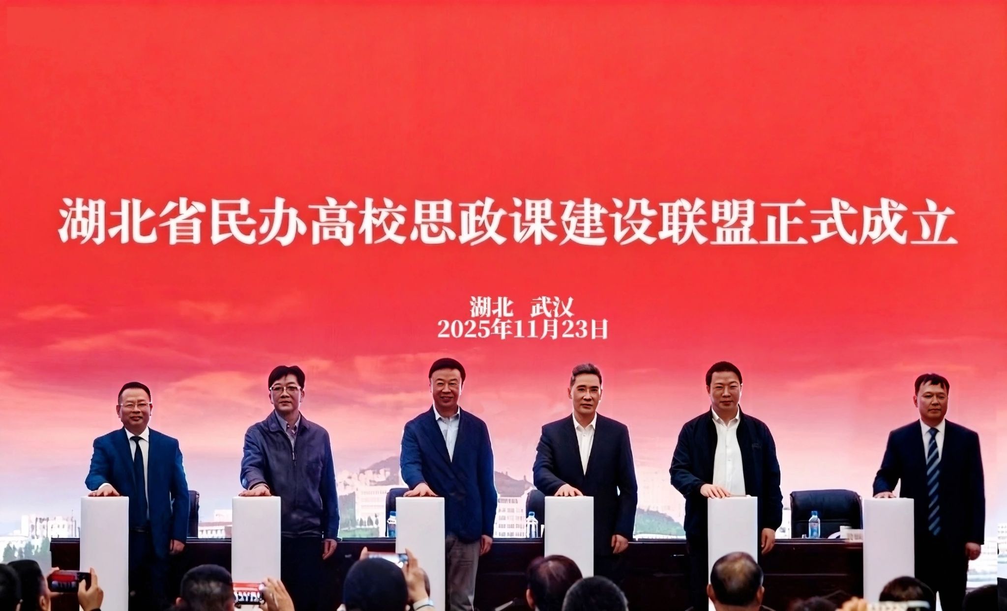 11月23日,武昌理工学院牵头成立湖北省民办高校思政课建设联盟,联合全省43所民办高校,以“资源共享、协同创新”为理念,全力打造具有湖北特色的民办高校思政课建设品牌。教育部高校思政课教指委总教指委主任委员、“民办高校思政课”分教指委主任委员、全国民办高校思政课建设联盟主席杨晓慧教授,教育部高校思政课教指委总教指委主任委员、“马克思主义基本原理”分教指委主任委员、清华大学习近平新时代中国特色社会主义思想研究院院长艾四林教授,省教育厅相关领导,《学校党建与思想教育》杂志社社长谢成宇教授,华中科技大学马克思主义学院院长岳奎教授,武昌理工学院党委书记高建勋教授,以及全省43所民办高校思政课负责人齐聚一堂,共襄盛举。