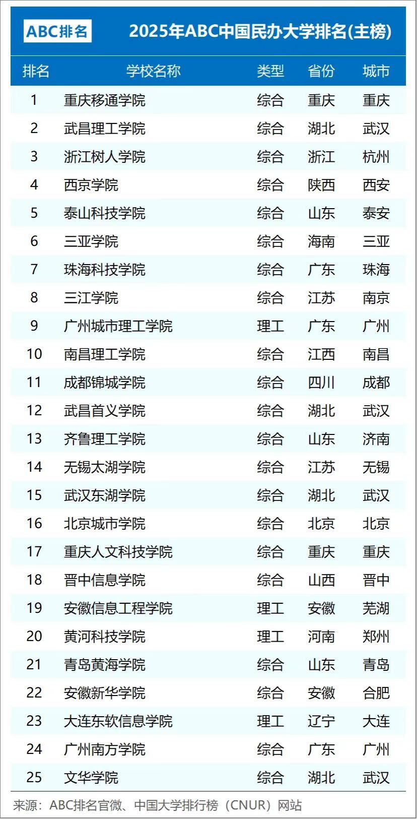十九、2025年ABC中国民办大学排名 武昌理工学院位居全国第二