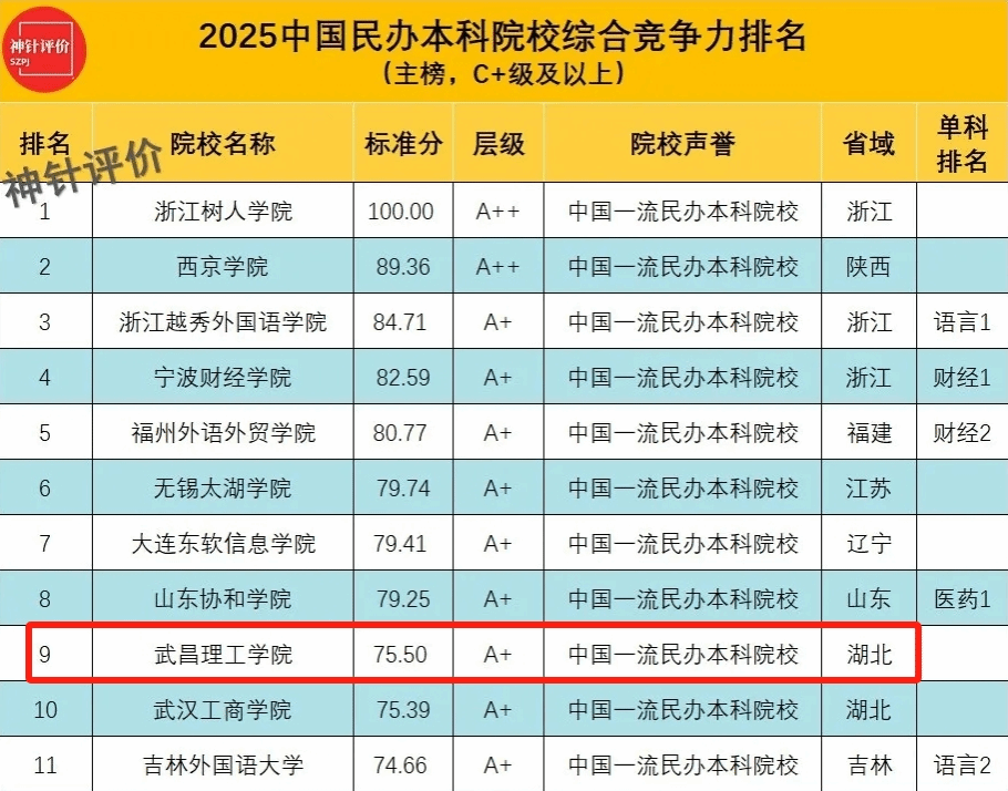 二十、2025中国民办本科院校综合竞争力排名 武昌理工学院位居全省同类高校榜首