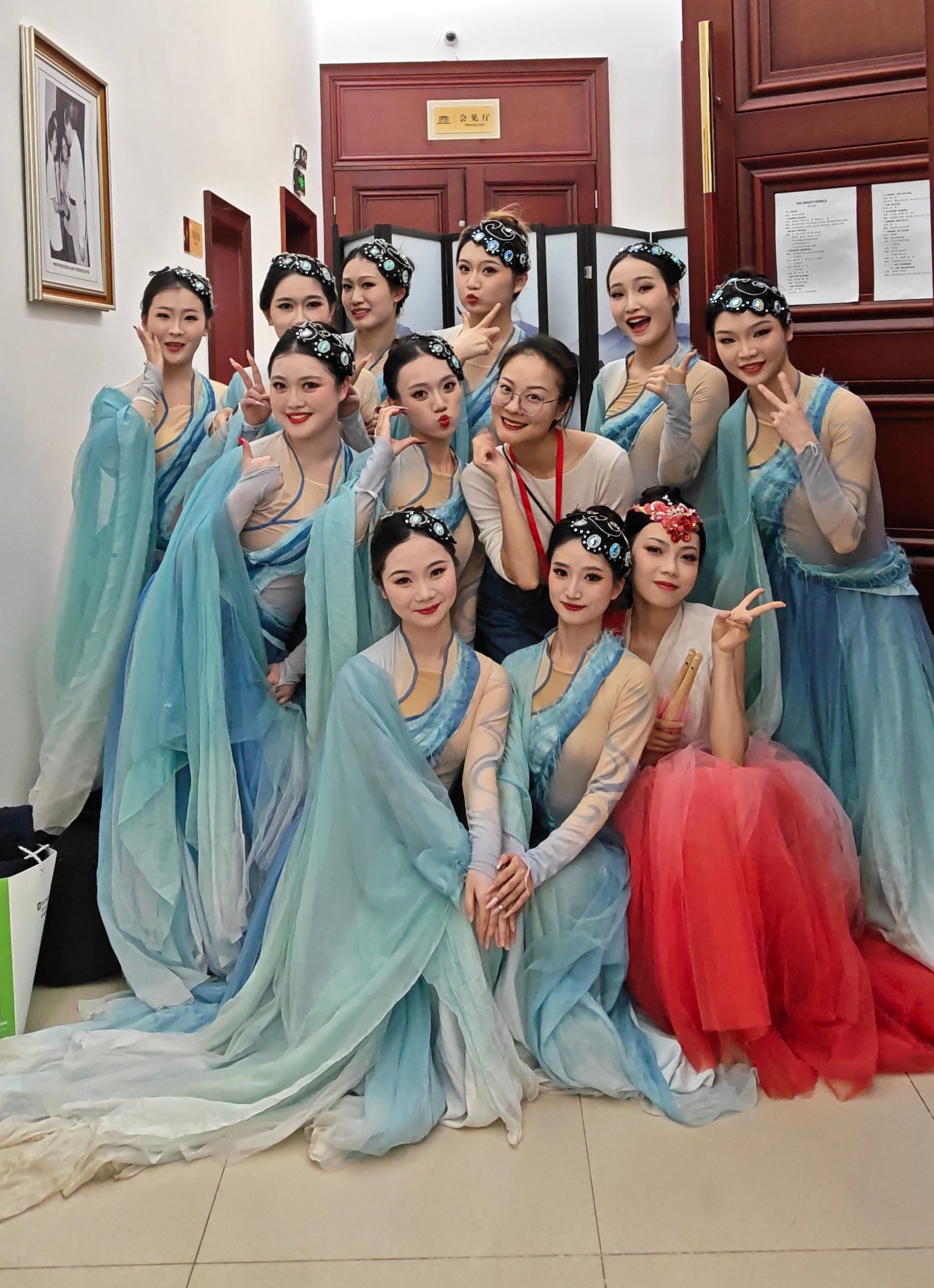从左往右:第七位是王林(编导)老师,第八位是袁怡(演员)老师,第九位是刘垚茜(编导、演员)老师