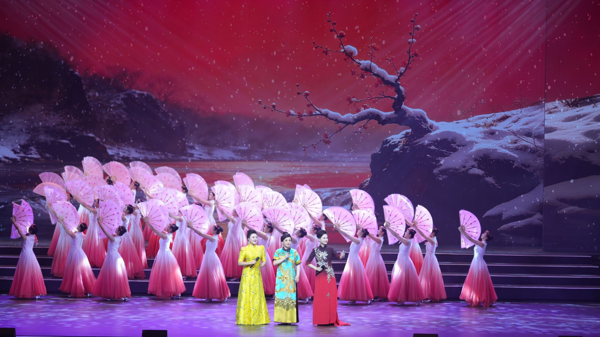 京汉楚戏歌《红梅赞》巧妙融合京剧的铿锵、汉剧的典雅与楚剧的活泼,由刘子微、夏青玲、王荔三位“梅花奖”得主共同演绎,唱响湖北戏曲的深厚底蕴。原创戏歌《风流数长江》则以艺术手法勾勒出长江奔涌、千帆竞发的发展气象,传递出昂扬的时代精神。