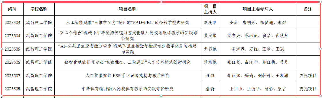 近日,湖北省教育厅正式公布《省教育厅关于公布2025年湖北本科高校省级教学改革研究项目的通知》。武昌理工学院申报的6个教学改革研究项目经评审成功获批立项。