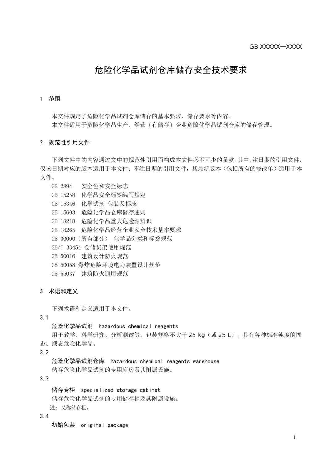 1.危险化学品试剂仓库储存安全技术要求(征求意见稿)