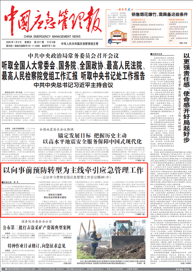 “推进治理模式向事前预防转型在‘十五五’时期应急管理工作全局中具有重要牵引作用,必须摆在突出位置来抓,要更加注重思想引领、关口前移、本质安全、实战导向、基层基础。”近日召开的全国应急管理工作会议(以下简称工作会)立足“十五五”时期的重要地位,明确以推进治理模式向事前预防转型为主线牵引应急管理工作,并提出“五个更加注重”的工作思路。
