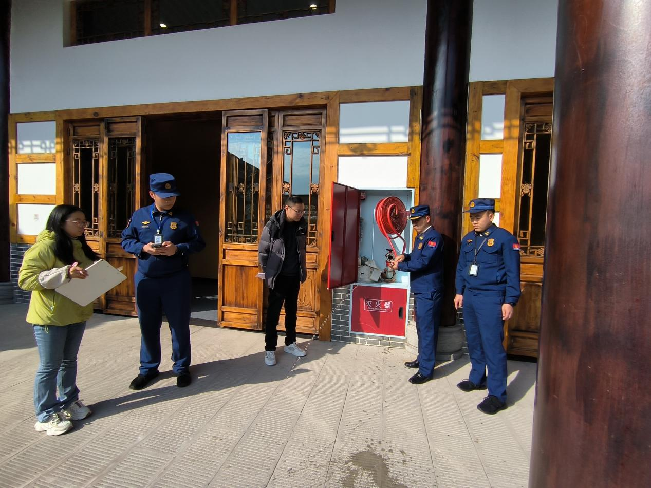 此次检查紧扣消防、安防、防雷三大核心环节展开。检查组通过实地勘查、设备测试、台账查阅、现场问询等方式,细致排查消防设施配备及完好情况,重点核查灭火器、消火栓压力数值与应急通道状态;全面检查安防监控系统运行状态,确保文物防盗预警机制有效运转。针对15处文物古建筑为木质结构、防火等级要求高的特点,检查组特别对用火用电规范、易燃物品存放等情况进行专项核查,对发现的隐患问题现场交办,明确整改责任与时限,建立“排查—整改—复查”闭环管理机制。