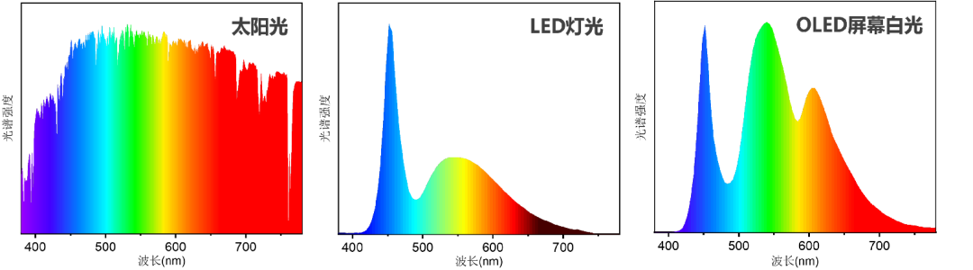 LED灯的白光(含更多短波长光,比如蓝光)在中心偏左一点。