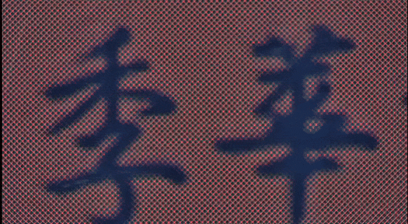 放大后的OLED屏幕,看到红绿蓝三种颜色的像素