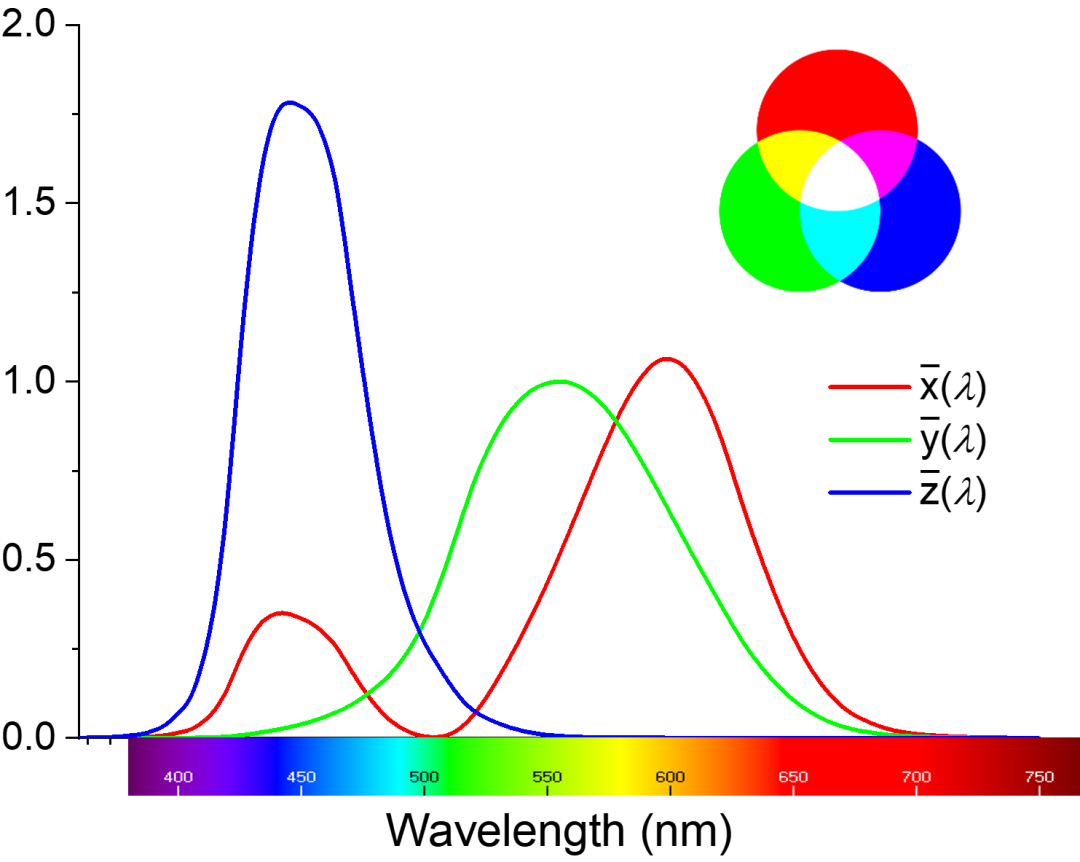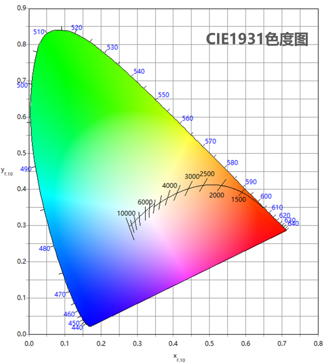 我们现在常用的CIE 1931色度图,是20世纪初国际照明委员会(CIE)在三原色的基础上, 通过大量实验对人眼颜色感知进行数学建模后绘制的。