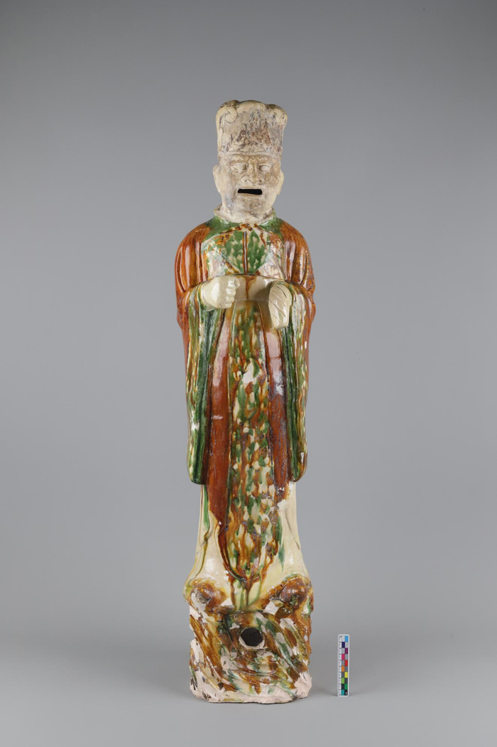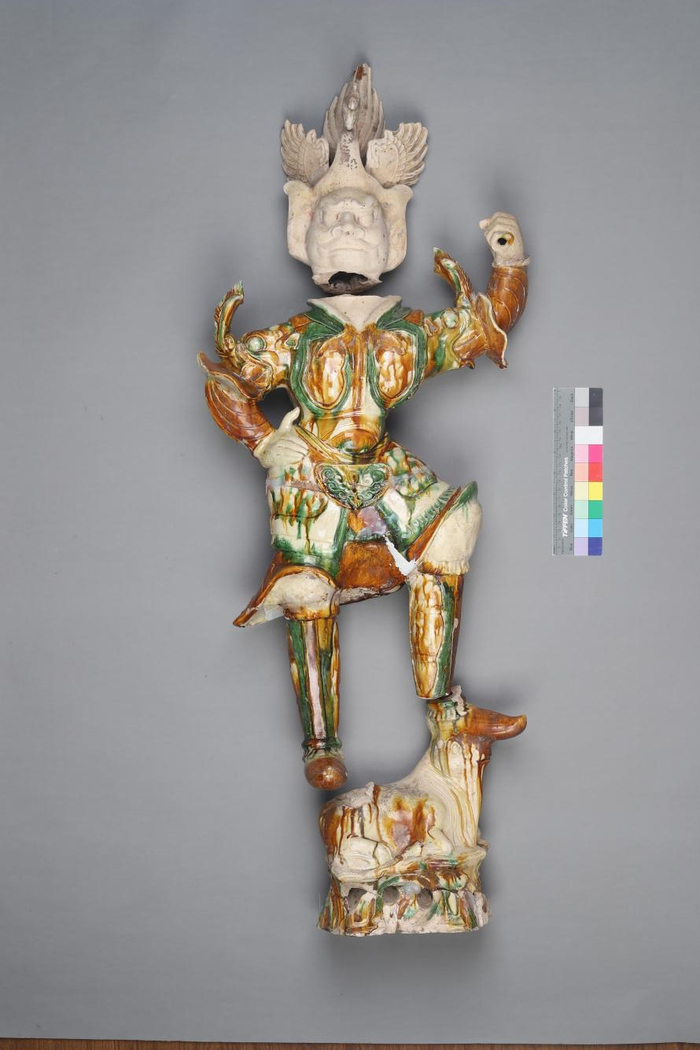 如果说完成修复是重要成果,那么只有在修复过程中才能发现的唐三彩的制作工艺,则是另一个重要收获。侍传军说,“比如,我们在拼对、粘接过程中发现唐三彩人俑的头、躯干和腿三部分之间是用泥浆粘接的,可见当时在制作时,这三部分是分别用模具成型,然后再拼接起来一起烧制的。此外我们还发现,从唐三彩的内部看,手搓印比较多,这显然是当时工匠是用手按压泥坯形成的,有的头部接口内侧有用三角形工具按压的痕迹。我们还可以看到模具拼合时留下的模范线,这条线在表面是被抹平的,所以看不出来,但是内部有明显的缝隙,缝隙里还会挤上泥浆。如此,我们可以肯定地说,当时人制作这批唐三彩用的是‘模具印坯’工艺,以现在的技术,是完全可以把当时的这种工艺复原的。”